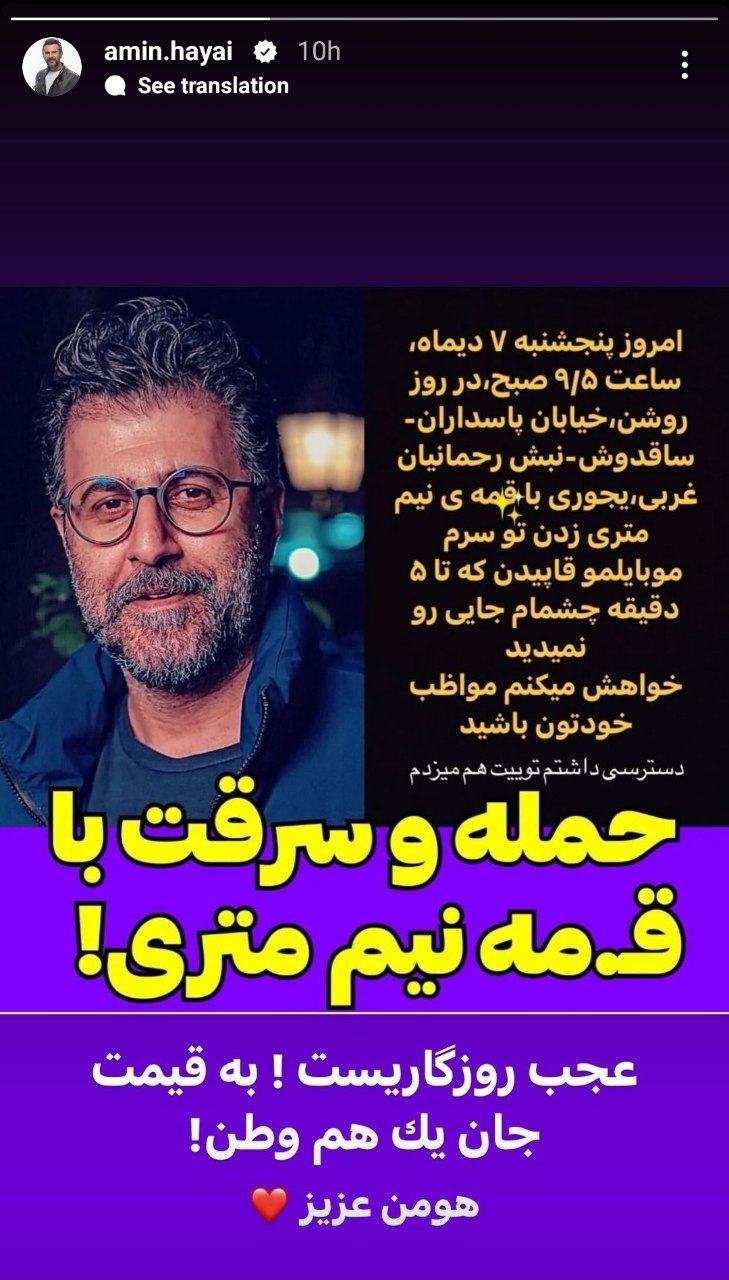 موبایل هومن حاجیعبداللهی را سارقین با قمه سرقت کردند!