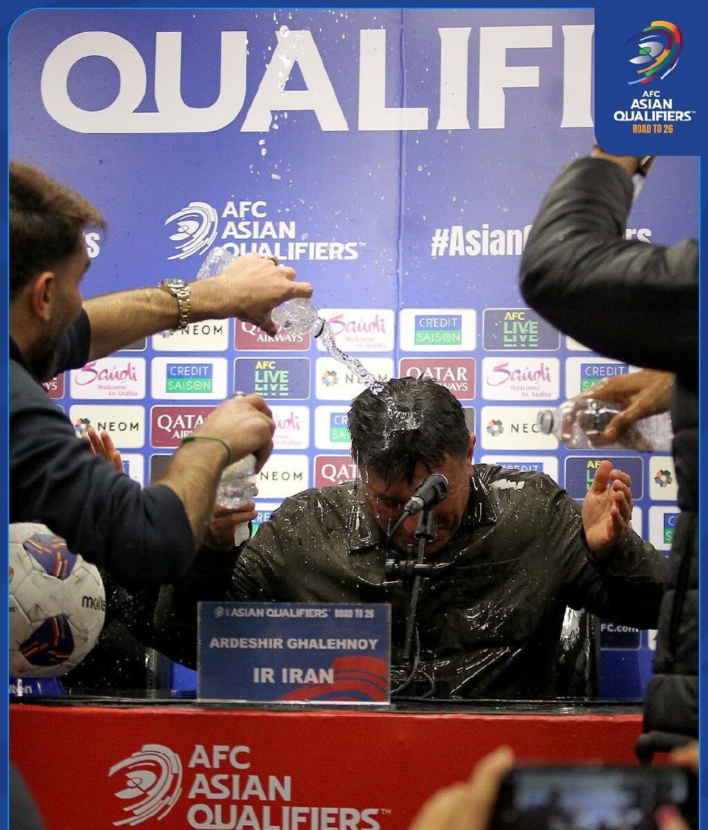 صفحه رسمی AFC در آستانه آخرین دیدارهای دیدارهای تیم ملی ایران در مقدماتی جامجهانی با انتشار تصاویری از نشست خبری قلعهنویی پس از جشن صعود نوشت: خیس از شوق صعود؛ جشن صعود با مدل مخصوص تیم ملی! تا شروع دوباره بازیهای ملی فقط ۵ روز مونده! آمادهاید؟