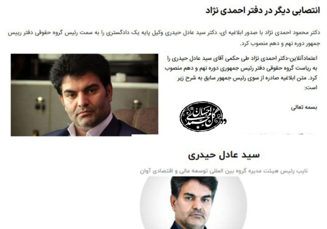 مشغول بررسی تیم مدیران ارشد این هولدینگ بودم؛ که به یک اسم آشنا برخورد کردم؛ یکی از نفرات اصلی هئیت مدیره گروه بین المللی توسعه مالی و اقتصادی آوان در دوران ریاست جمهوری احمدی نژاد مسئولیت گروه حقوقی دفتر رئیس جمهور را برعهده داشت.