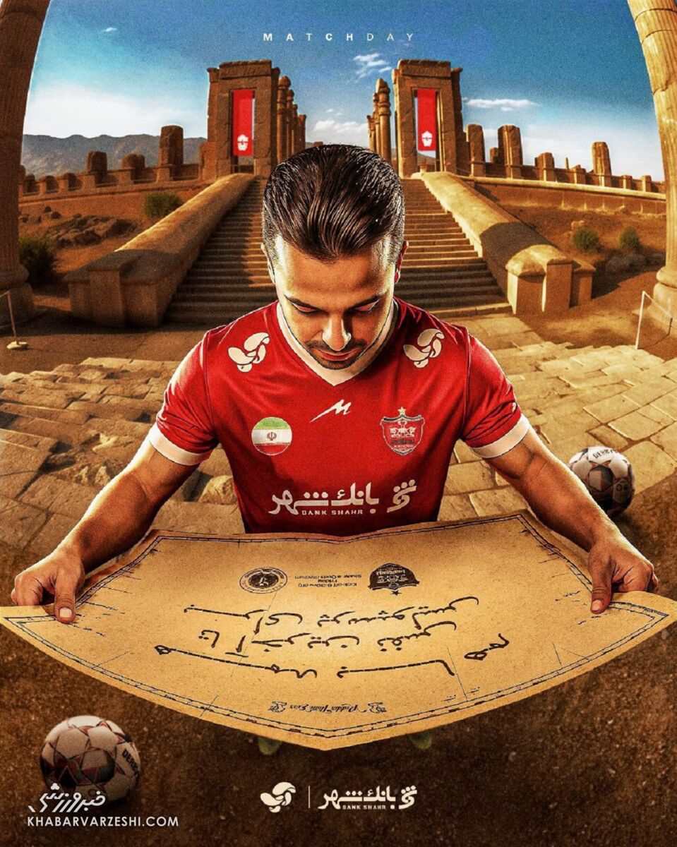 باشگاه پرسپولیس به مناسبت دیدار پیشِرو مقابل گلگهر سیرجان، پوستری ویژه و متفاوت منتشر کرده است. پوستری با طرحی از تخت جمشید و سروش رفیعی که نوشتهای در دست دارد.
