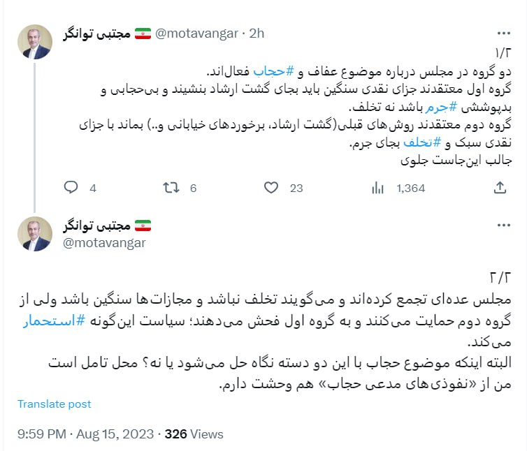 نماینده مجلس: از نفوذیهای مدعی حجاب وحشت دارم