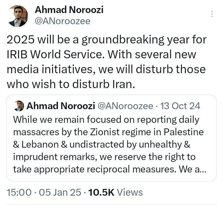 🔹معاون برونمرزی صداوسیما با نقل قول کردن توییت قبلی خود که خطاب به رئیس تی آر تی منتشر کرده بود، با استفاده از ادبیات “زاهد سوباچی” ابراز داشت که هرکس بخواهد ایران را اذیت کند، اذیت خواهیم کرد. او بدون نام بردن از ترکیه پیامی روشن به همتایان ترک خود فرستاده است.