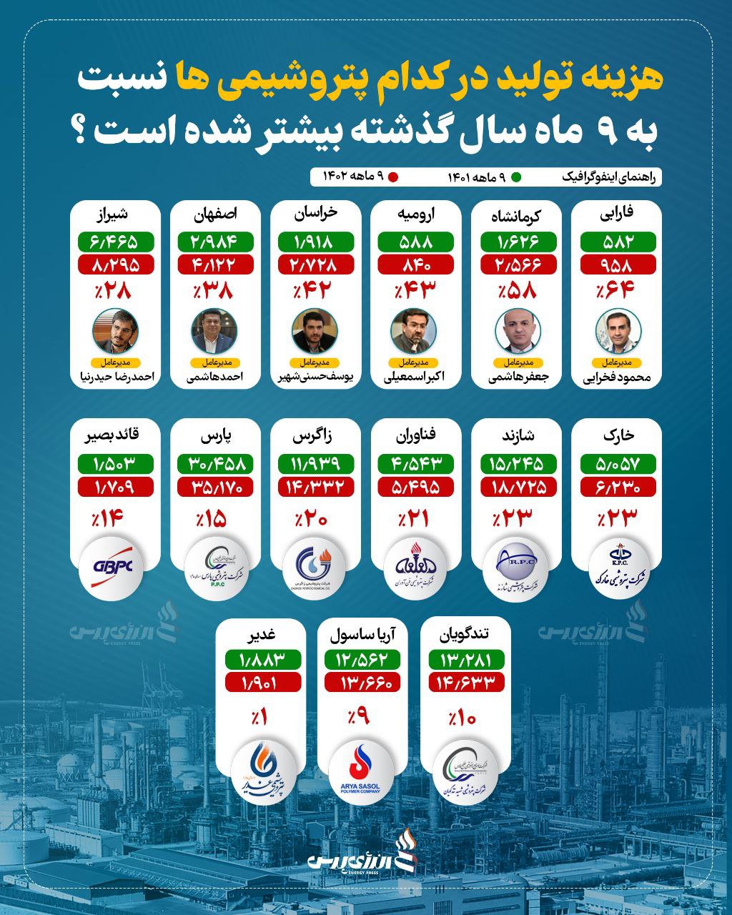 هزینه تولید در کدام پتروشیمیها نسبت به ۹ ماه سال گذشته بیشتر شده است؟
