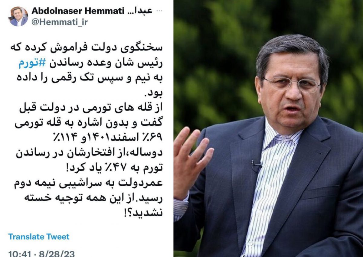 همتی: سخنگوی دولت فراموش کرده که رئیسشان وعده «رساندن تورم به نیم و سپس تک رقمی» را داده بود / بدون اشاره به قله تورمی ۶۹ درصدی اسفند ۱۴۰۱ و تورم ۱۱۴ درصدی طی دو سال، از افتخار رساندن تورم به ۴۷٪ یاد کرد! / از این همه توجیه خسته نشدید؟