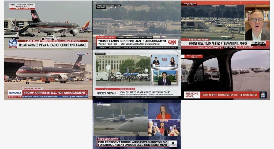 همه کانال های اصلی آمریکا ورود ترامپ به واشنگتن دی سی را برای آماده شدن برای حضور در دادگاه فدرال پوشش می دهند.