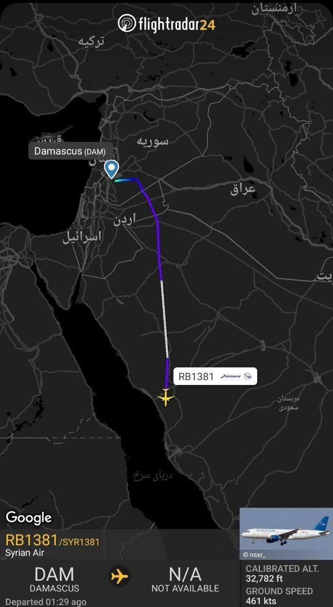 هواپیمای حامل رییسجمهور سوریه بشار اسد تا دقایقی دیگر در فرودگاه جده فرود خواهد آمد