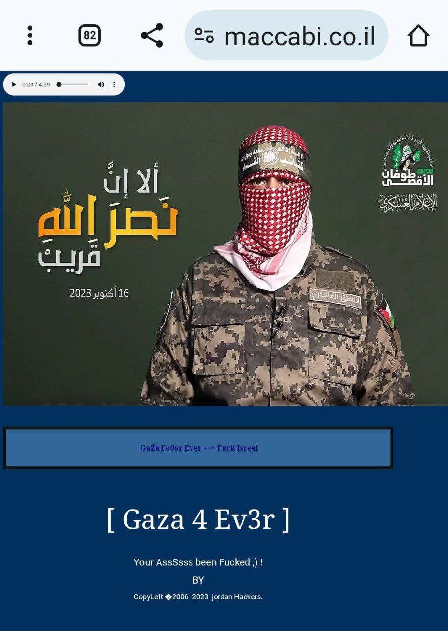 هک سایت تیم بسکتبال مکابی تل آویو و انتشار تصویر ابو عبیده سخنگوی قسام شاخه نظامی حماس