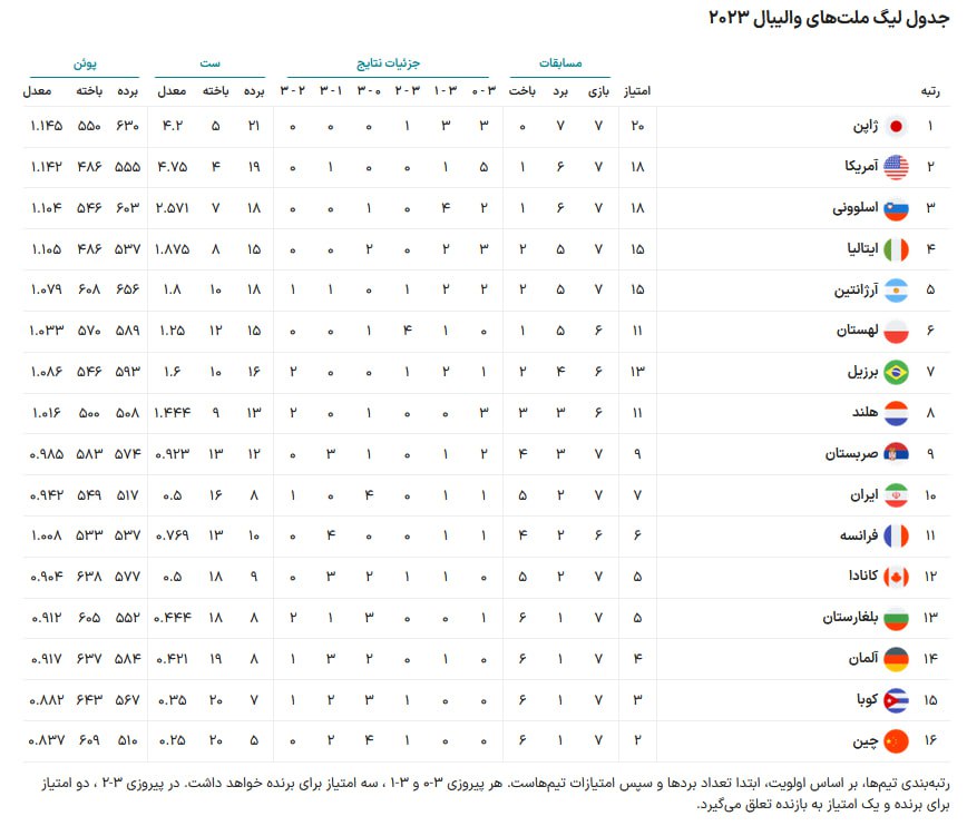 🔹در پایان چهارمین روز هفته دوم لیگ ملتهای والیبال، سامورایی ها با ۷ برد پیاپی به صدرنشینی خود ادامه دادند.