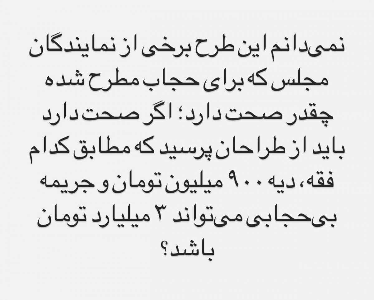 🔹مطابق کدام فقه، دیه ۹۰۰ میلیون و جریمه بدحجابی ۳ میلیارد تومان است