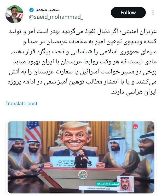 واکنش سعید محمد به تمسخر مقامات عربستانی در صداوسیما
