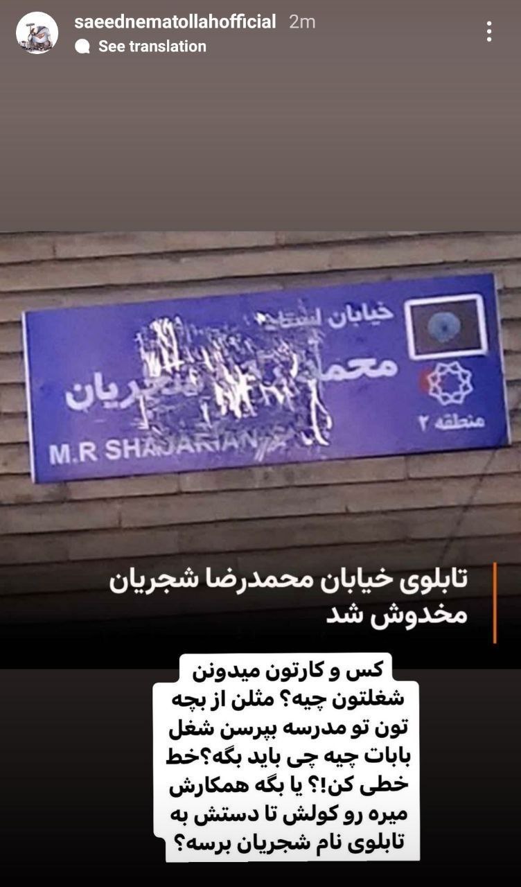 واکنش «سعید نعمت اله» کارگردان «پدر گواردیولا» به تخریب تابلوی خیابان استاد «محمدرضا شجریان».