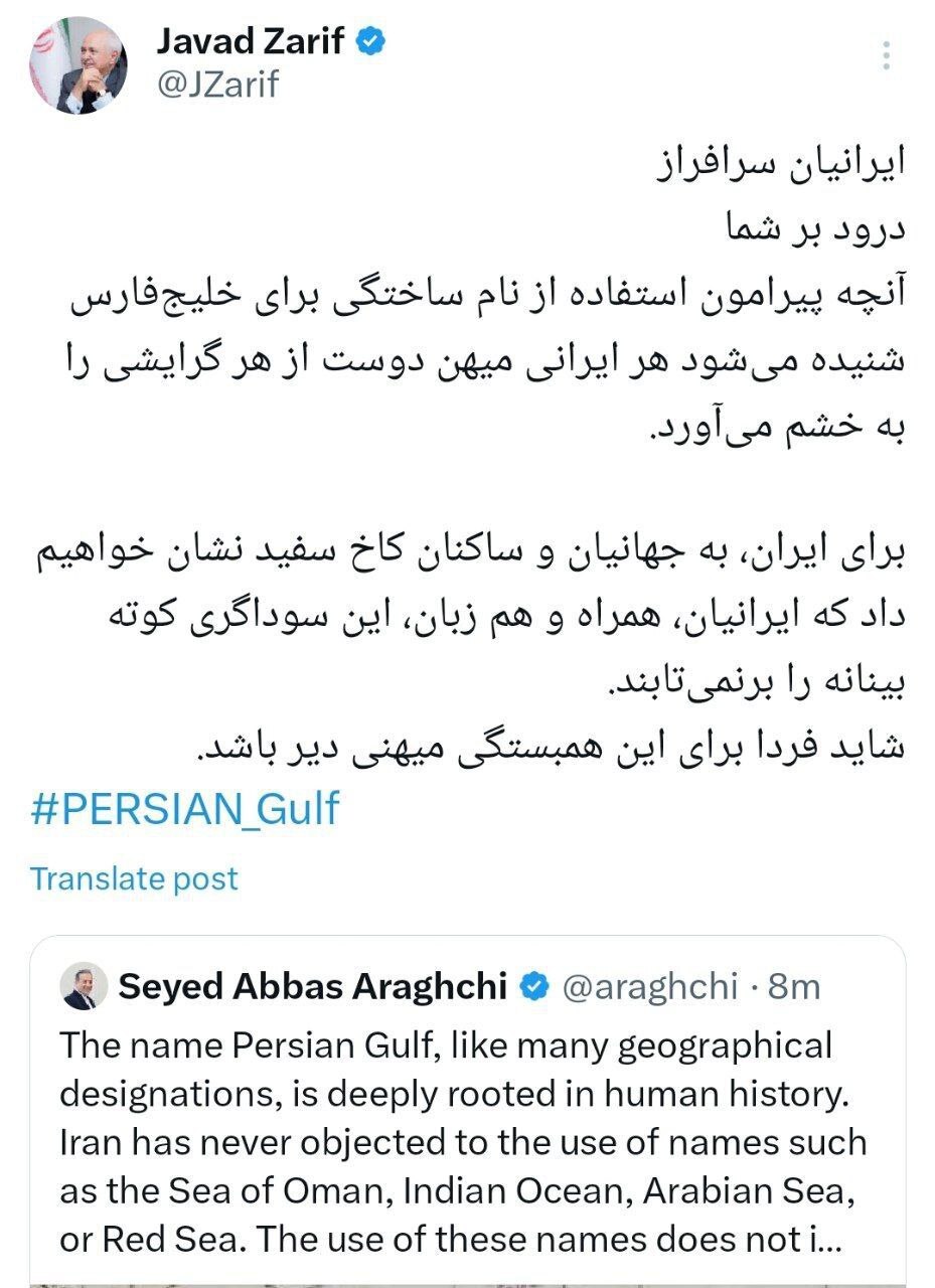 واکنش ظریف به اقدام ترامپ علیه خلیج فارس