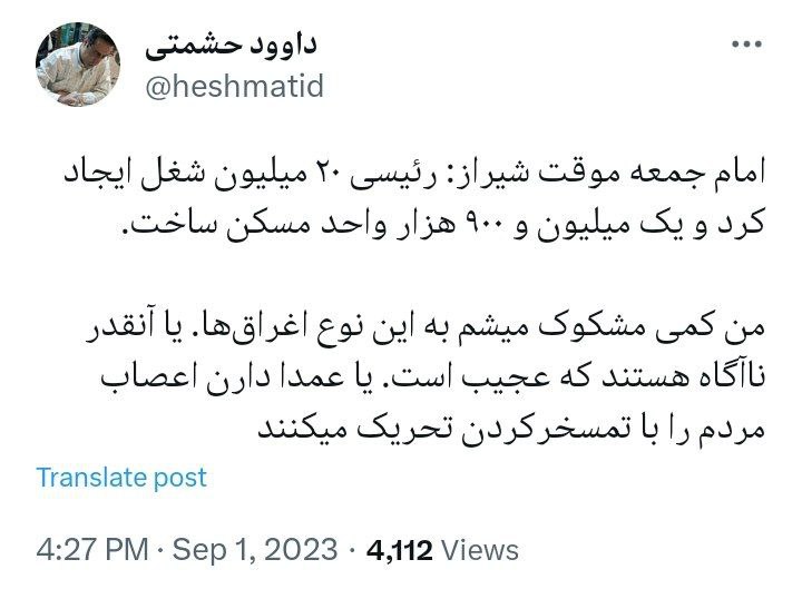 واکنش فعال رسانه ای به گفته های امام جمعه شیراز