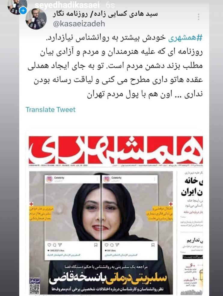 واکنش فعال رسانه ای و استاد روزنامهنگاری به تیتر عجیب روزنامه همشهری