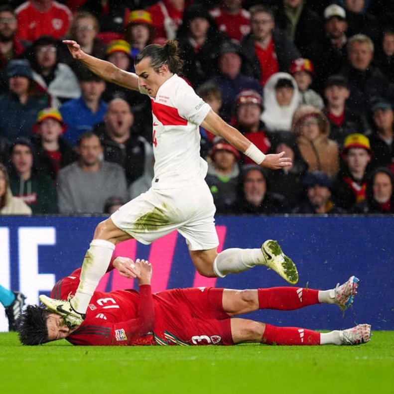🔹در حالی که ترکیه از دقیقه ۶۲ با اخراج یک بازیکن ۱۰ نفره به کار ادامه میداد، ولزیها فرصت را غنیمت شمرده و نبض بازی را در اختیار گرفته بودند. ارسال یک پاس در عمق برای کیفر مور میرفت که او را با دروازهبان ترکیه تک به تک کند اما سویونچو پیش از مور توپ را دور کرد و سپس به علت عدم تعادل، به شکی ناخواسته روی سر کیفر مور فرود آمد تا بازی متوقف شود که خوشبختانه اتفاق خاصی برای مهاجم ولز رخ نداد و اون با بانداژ سر به زمین بازگشت و تا پایان در زمین ماند.