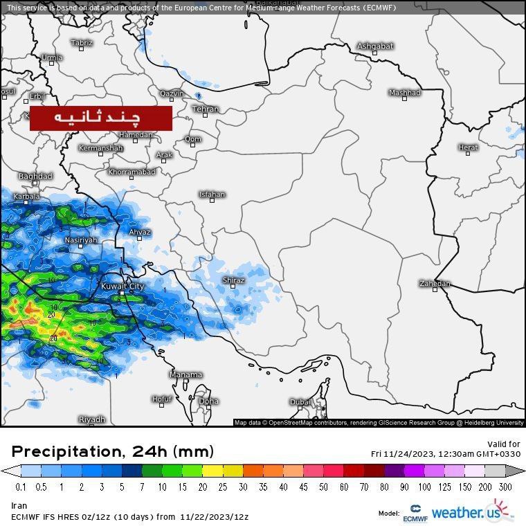 🔹فعلا برای امروز در استانهای خوزستان، جنوب ایلام، بوشهر، فارس و تا حد کمی در کهگیلویهبویراحمد شاهد آغاز فعالیت این موج به شکل بارشهای پراکنده خواهیم بود که طی روز بعدی تشدید خواهد شد.
