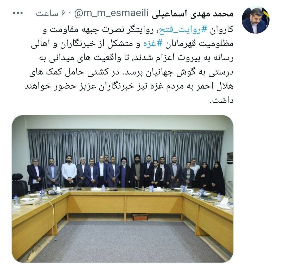 وزیر ارشاد عکس این خبرنگاران را منتشر کرده و نوشته که به “بیروت” لبنان میروند تا از غزه گزارش تهیه کنند!