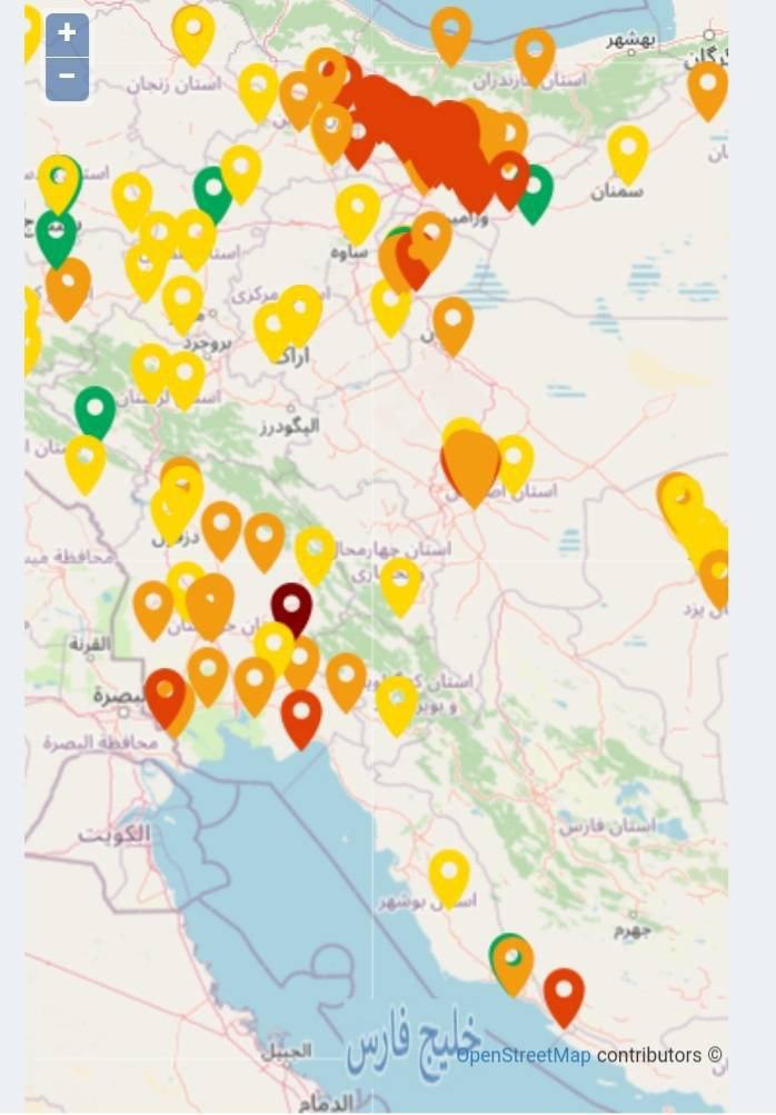 🔹با تداوم پایداری جوی هوای تهران، کرج، قزوین، قم، ورامین، اصفهان، خمینی شهر، اهواز، آبادان و خرمشهر در وضعیت قرمز و ناسالم قرار گرفته است.