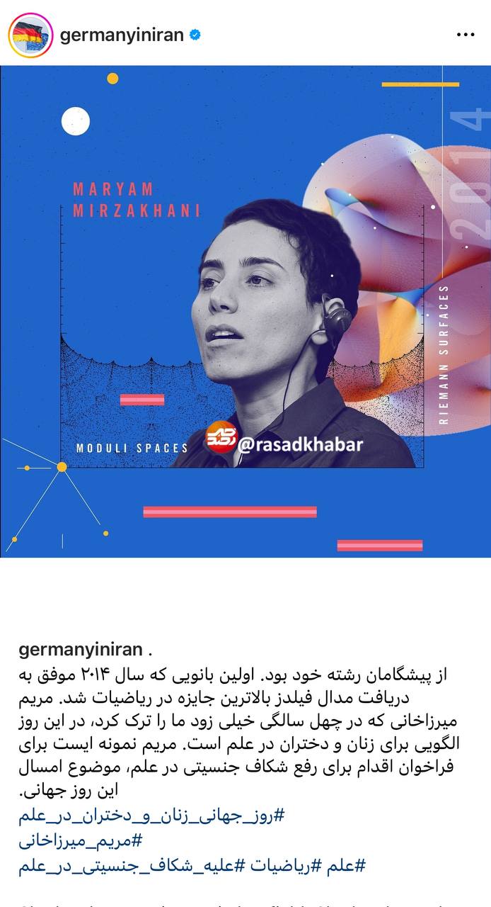 پست اينستاگرام سفارت آلمان در ايران درباره مريم ميرزاخانى