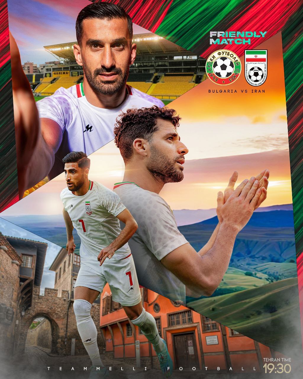 تیم ملی فوتبال ایران ساعت ۱۹:۳۰ امروز در شهر پلودیف بلغارستان به مصاف تیم ملی این کشور خواهد رفت. پوستر فدراسیون فوتبال ایران برای این دیدار تدارکاتی را میبینید. این مسابقه در فیفادی با قضاوت داورانی از صربستان برگزار میشود
