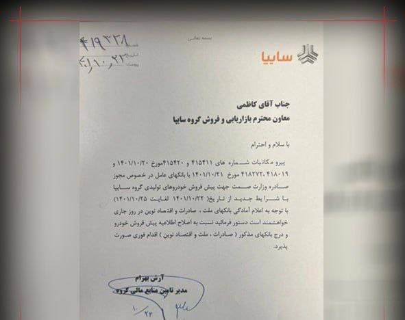 🔹پس از انتقادات گسترده از اقدام شرکت سایپا درخصوص طرح پیشفروش خودرو از طریق بانک تجارت و الزام مشتریان به افتتاح حساب در این بانک، مدیر تامین منابع مالی گروه خودروسازی سایپا در نامهای به معاون بازاریابی و فروش این شرکت از اضافه شدن بانکهای ملت، صادرات و اقتصاد نوین به این طرح خبر داد.