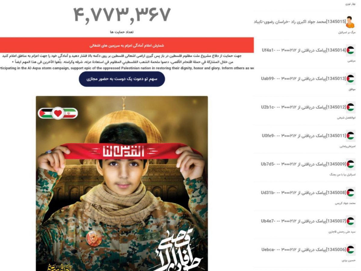 🔹آمار پویش حریفت منم که برای مبارزه با اسراییل طراحی شده به پنج میلیون نزدیک میشود. یعنی تغریبا از هر ۱۸ ایرانی، یک نفر از طریق پیامک یا سامانه اعلام کرده که برای مبارزه با صهیونیسم آمادگی دارد.
