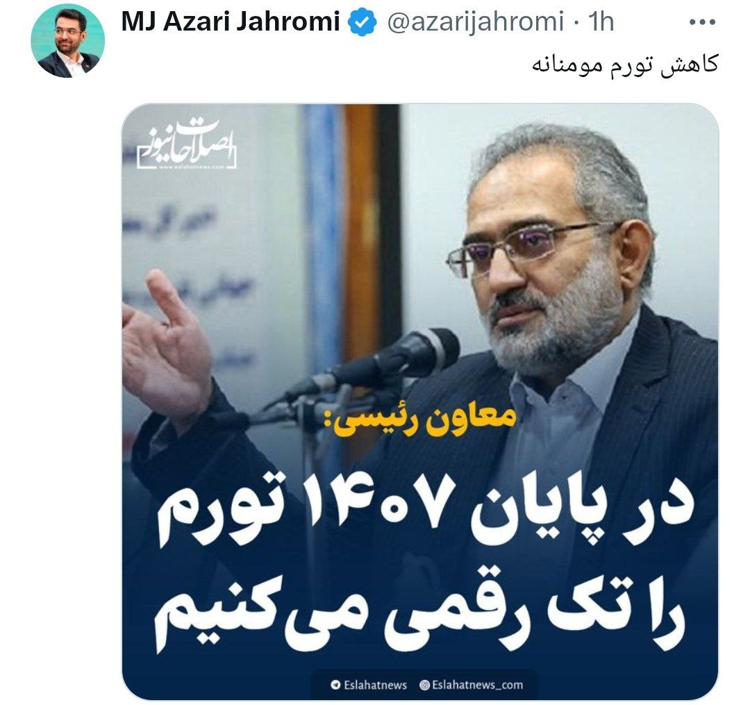 🔹واکنش جالب آذری جهرمی به گفته معاون رییسی