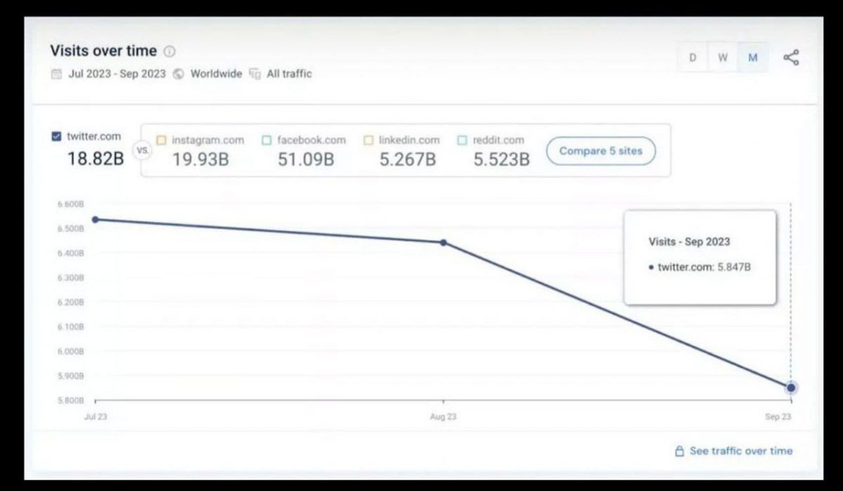 🔹 دادههای جدیدی منتشر شده که نشان میدهد ایکس تنها در ماه سپتامبر حدود ۶۰۰ میلیون بازدیدکننده خود را از دست داده است.