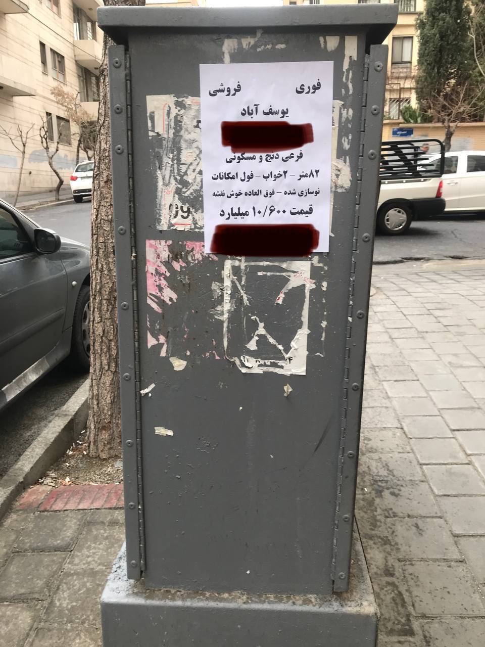 🔹در یک نمونه که تصویر آن در این پست آمده است، یک آپارتمان در یوسفآباد برای فروش روی تابلو برق آمده است.