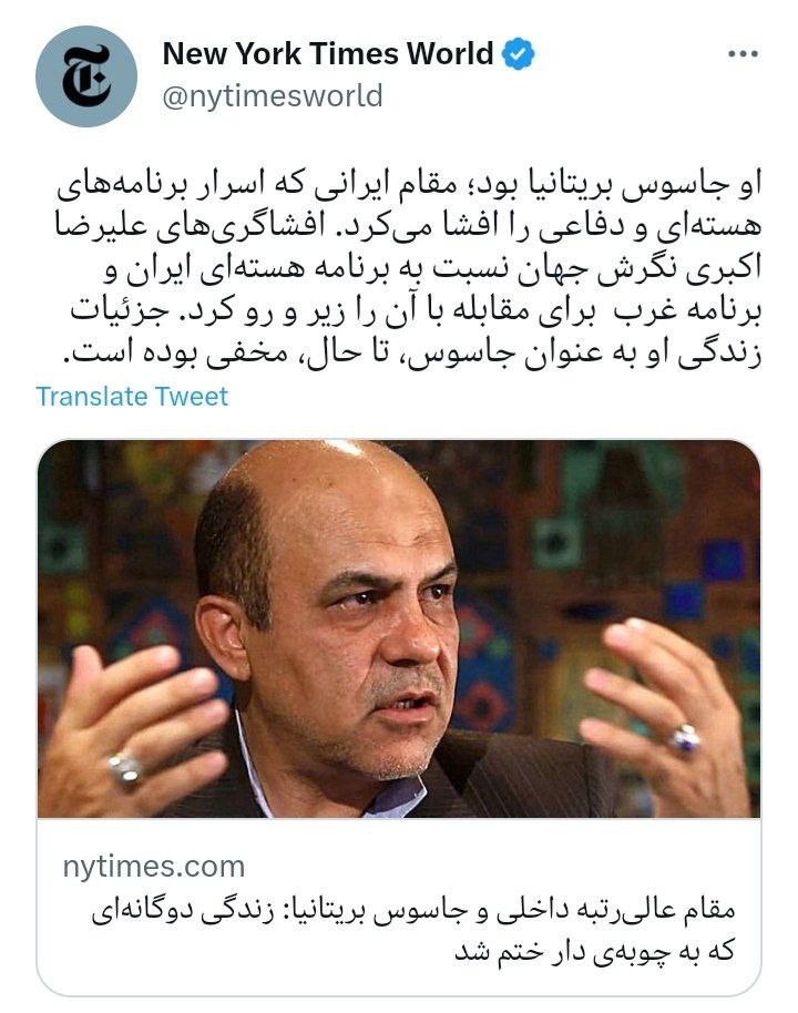 گزارش فارسی نیویورک تایمز در باره علیرضا اکبری جاسوس هسته ای