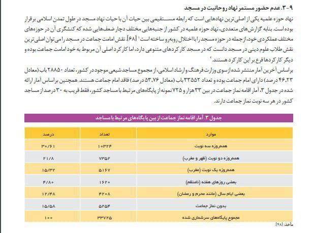 🔹 ۵۳ درصد مساجد کشور امام جماعت ندارد.