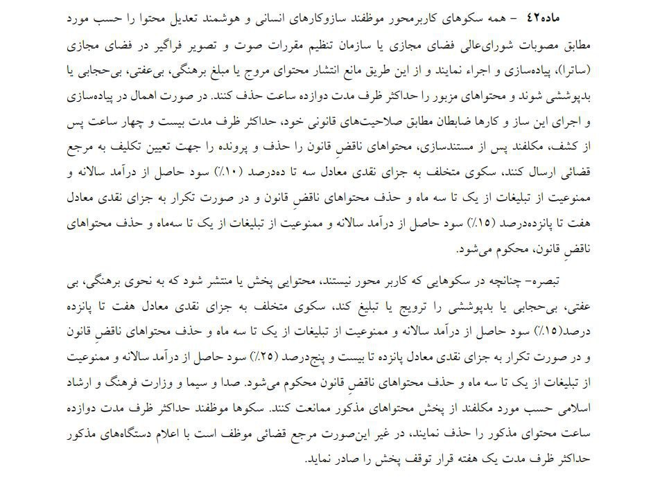 🔹طبق این قانون تصاویر پروفایل کاربران پلتفرمهای داخلی نیز باید با رعایت حجاب باشد.