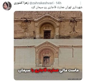 یک شاهکار دیگر 🔹شهرداری تهران عمارت قاجاری را سیمان کرد!