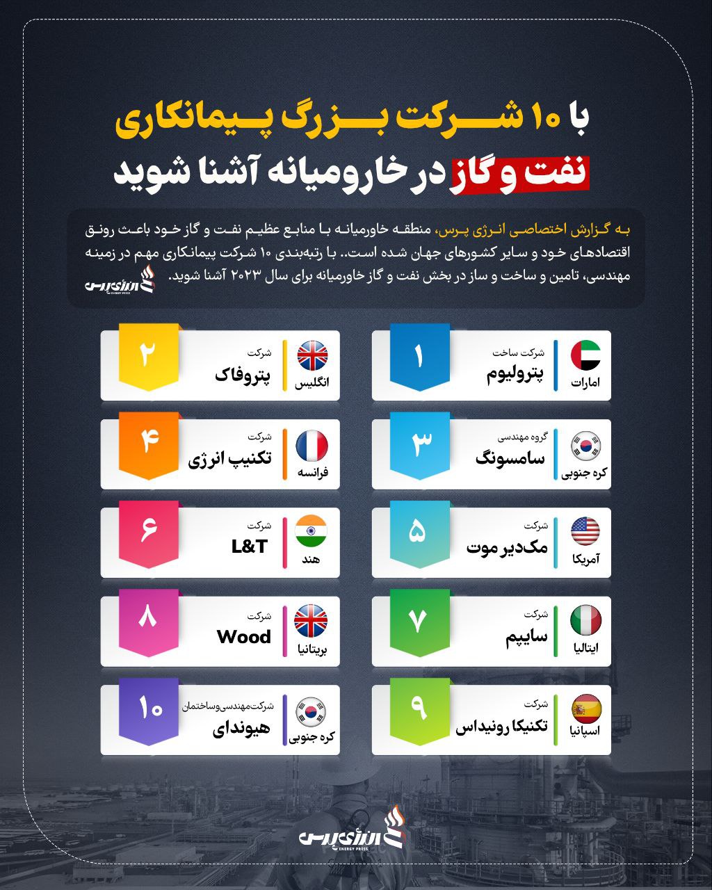 ۱۰ شرکت بزرگ پیمانکاری نفت و گاز در خاورمیانه آشنا شوید