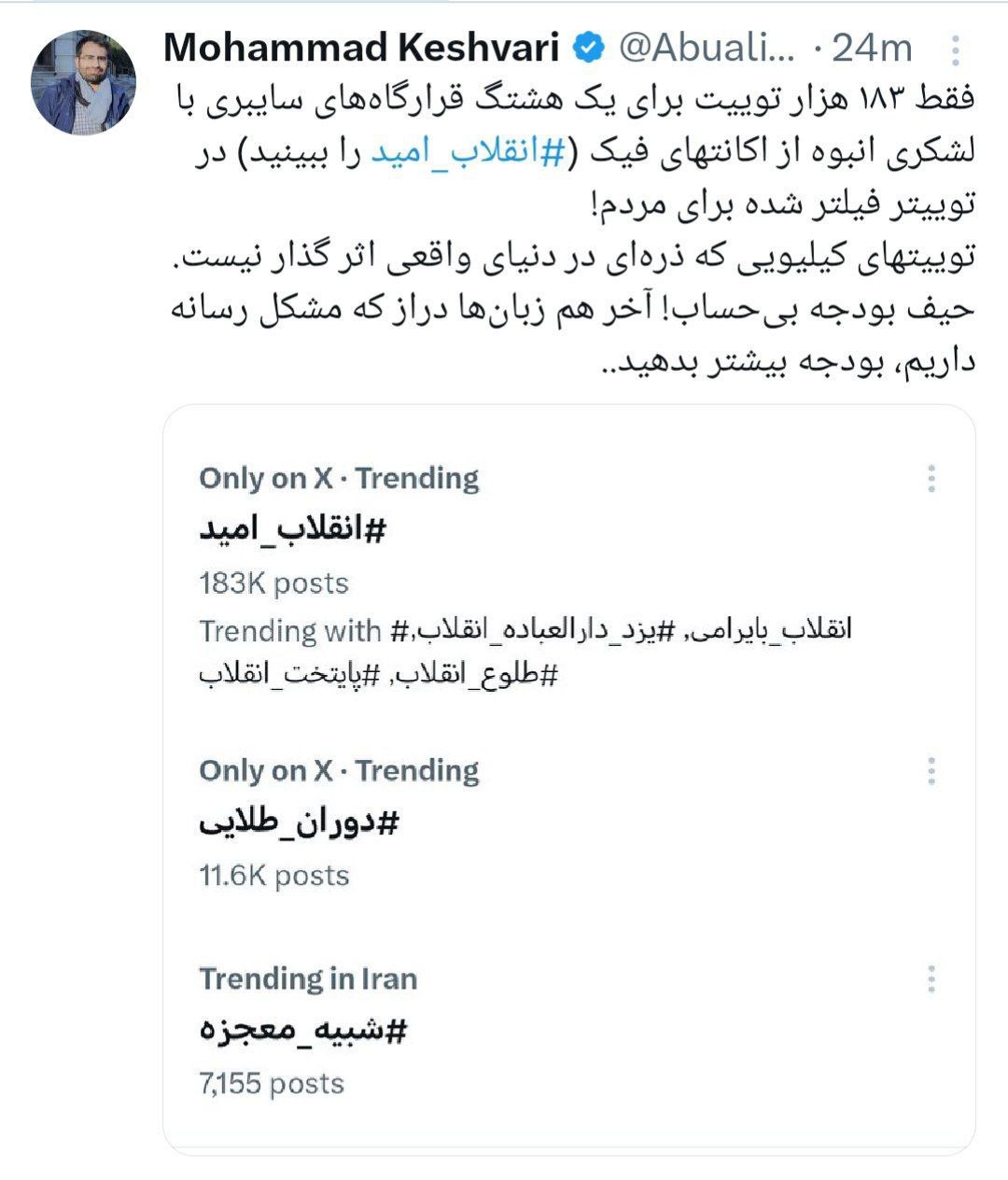 ۱۸۳هزار توییت با اکانت های فیک قرارگاهی در توییتر فیلتر شده برای سالگرد انقلاب