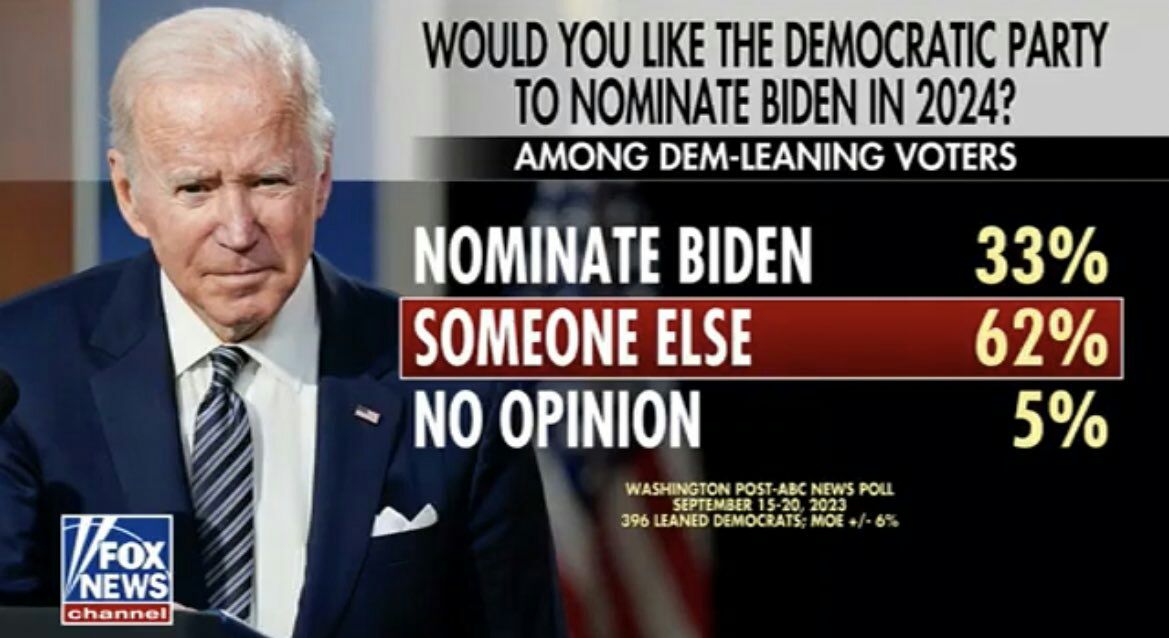 ۶۲ درصد رای دهندگان به نظرخواهی شبکه تلویزیونی فاکس نیوز از حزب دموکرات خواستند که در انتخابات ریاست جمهوری ۲۰۲۴ نامزدی غیر از جو بایدن را معرفی کند.