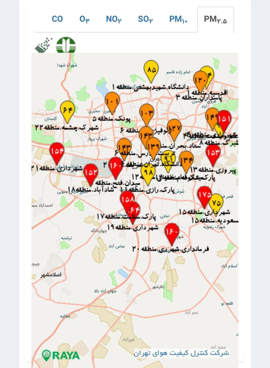 🔹در حال حاضر ۹ منطقه عمدتاً مرکزی و جنوبی شهر تهران در وضعیت «قرمز» است و شاخص آلودگی در آنها تا ۱۷۰ هم پیش رفته است.