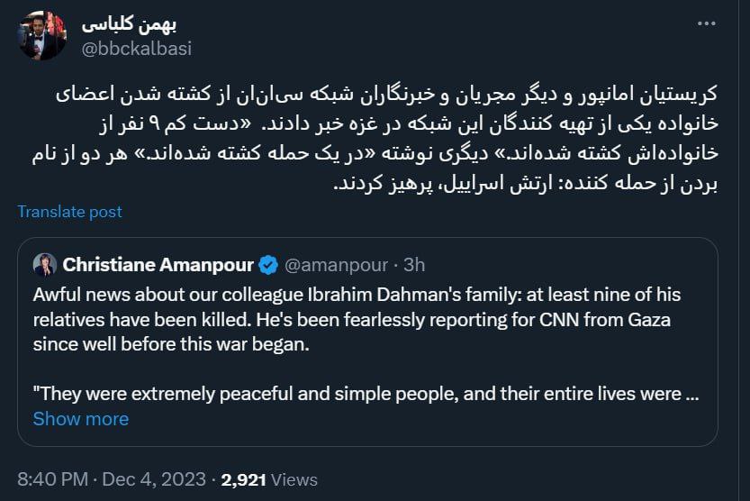 خبرنگار بیبیسی نوشته کسی از عامل کشتار یعنی اسرائیل نام نمیبرد!