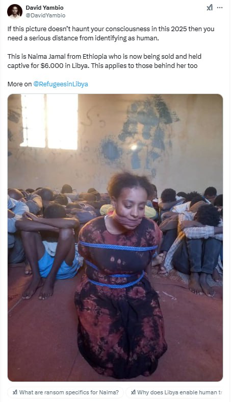 🔹این نعیما جمال اهل اتیوپی است که اکنون به قیمت شش هزار دلار در لیبی فروخته شده و اسیر شده است./توییت یک خبرنگار محلی