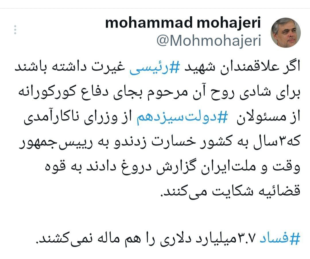 🔹برای شادی روح شهیدرئیسی خواهان محاکمه وزیران بیلیاقتش شوید