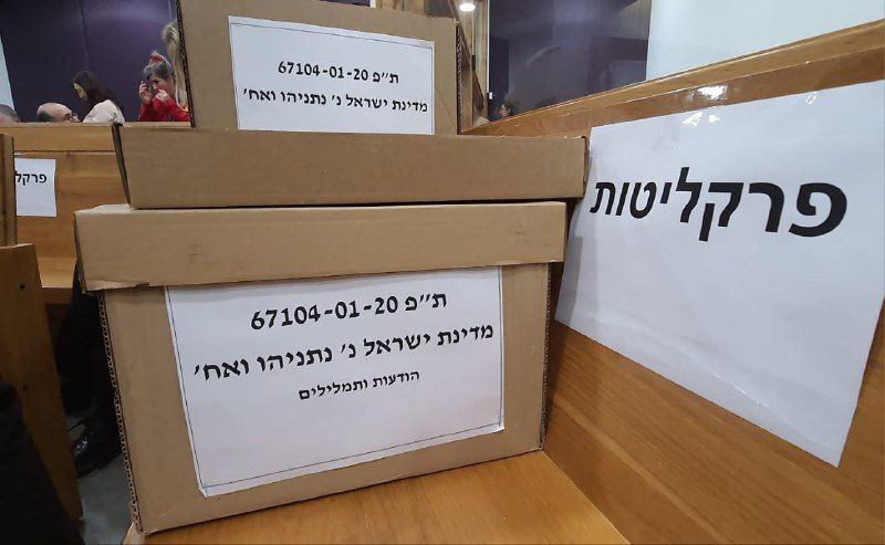 🔹تصویری از جعبه پروندههای مربوط به اسناد فساد مالی نتانیاهو در دادگاه منطقهای تل آویو که مورد توجه رسانه ها قرار گرفته است.