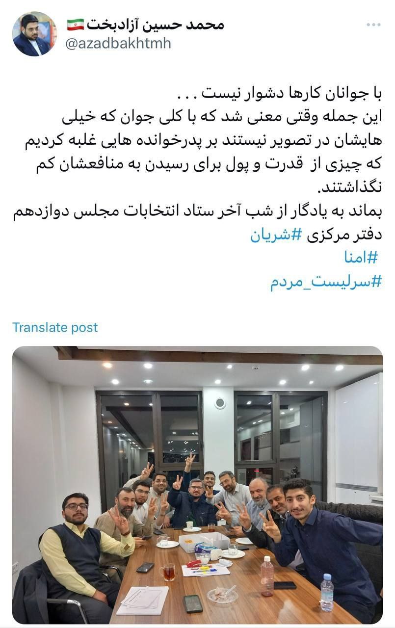 🔹تصویری از هسته مرکزی شریان پس از پیروزی لیست امنا در انتخابات