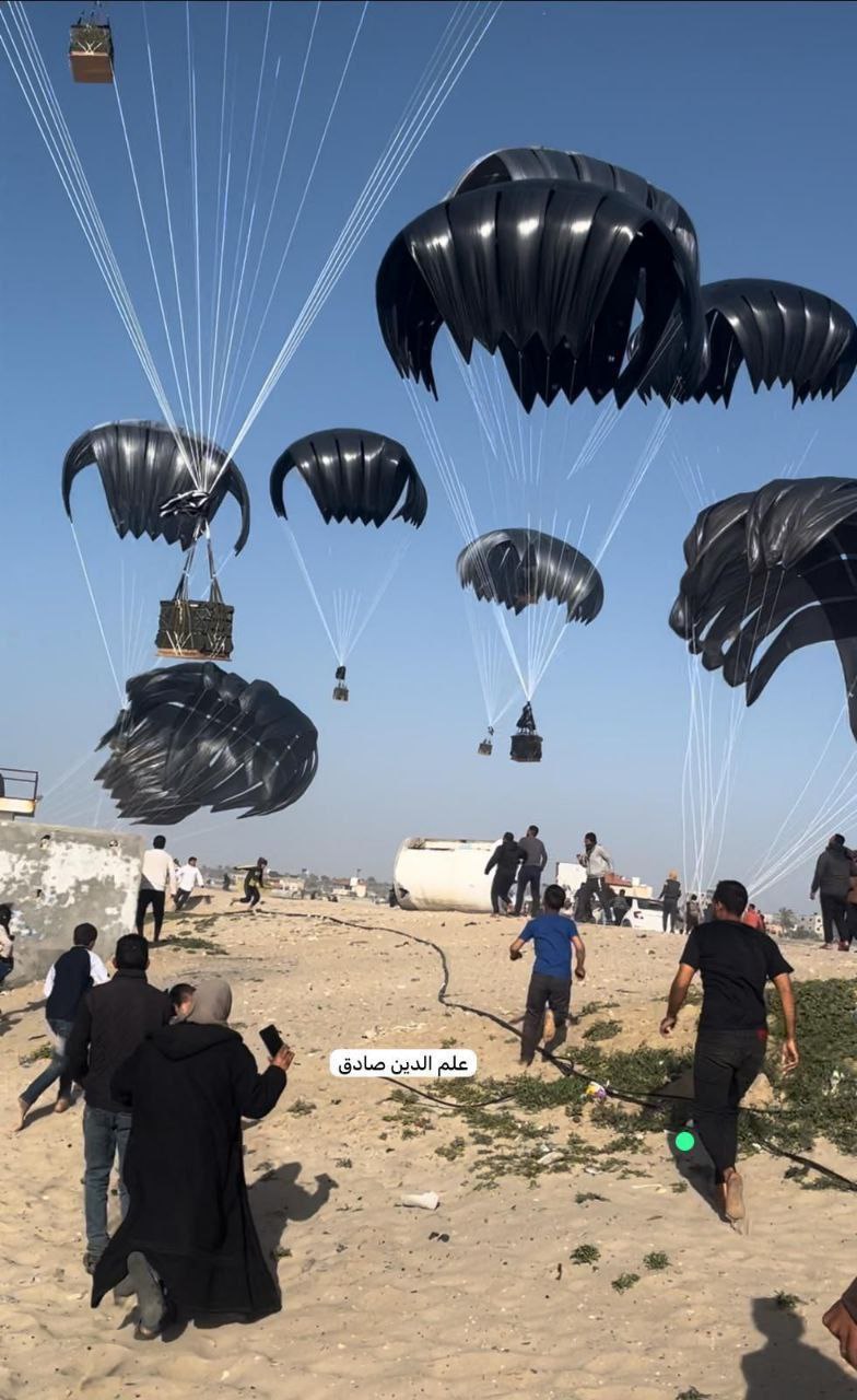 🔹تصویری از پرتاب کمک های غذایی آمریکا در نوار غزه