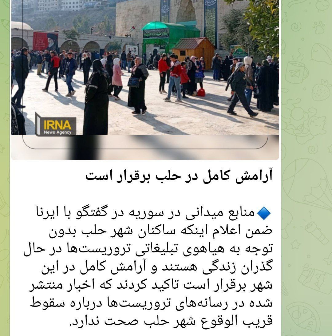 🔹خبرگزاری دولت، خبر سقوط حلب را تکذیب کرد.