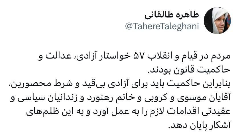 🔹درخواست توییتری دختر آیتالله سیدمحمود طالقانی در سالگرد پیروزی انقلاب