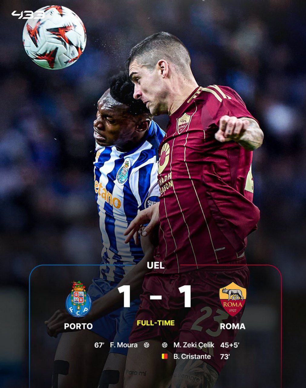 🔹در یکی از جذابترین بازیهای مرحله پلیآف لیگ اروپا رم در خانه پورتو به تساوی ۱-۱ رسید.