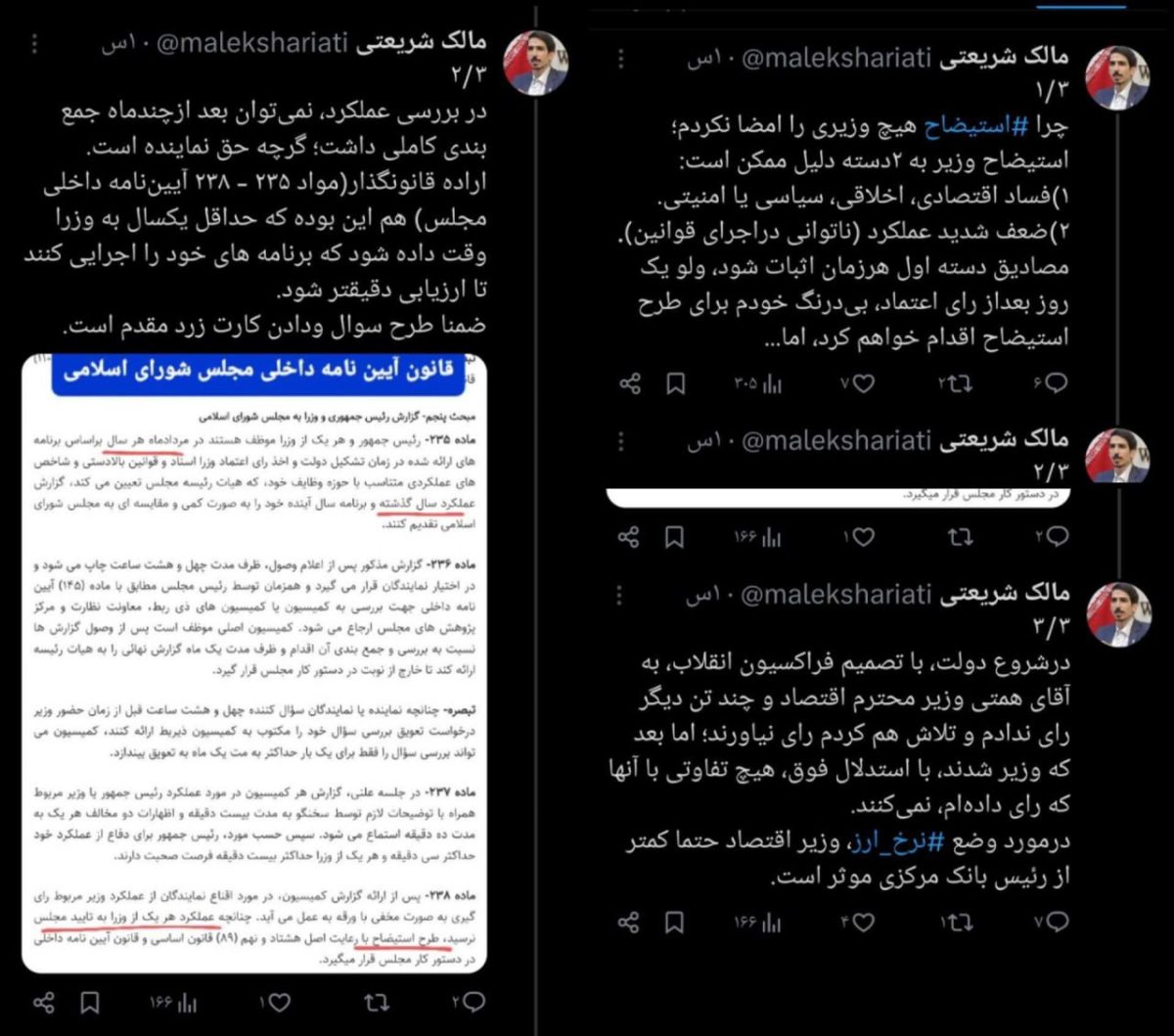 🔹دلایل عدم امضا استیضاح وزیران از زبان مالک شریعتی نماینده اصولگرا مجلس