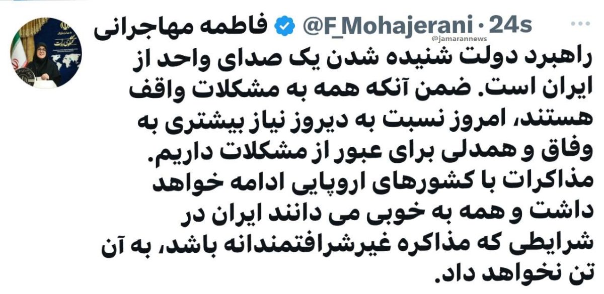 🔹سخنگوی دولت: مذاکرات با کشورهای اروپایی ادامه خواهد داشت