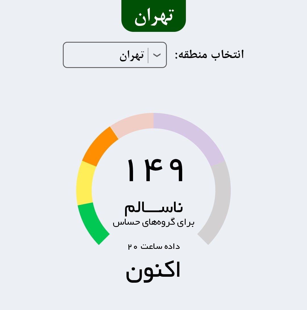 🔹شاخص آلودگی هوای تهران، هم اکنون ۱۴۹