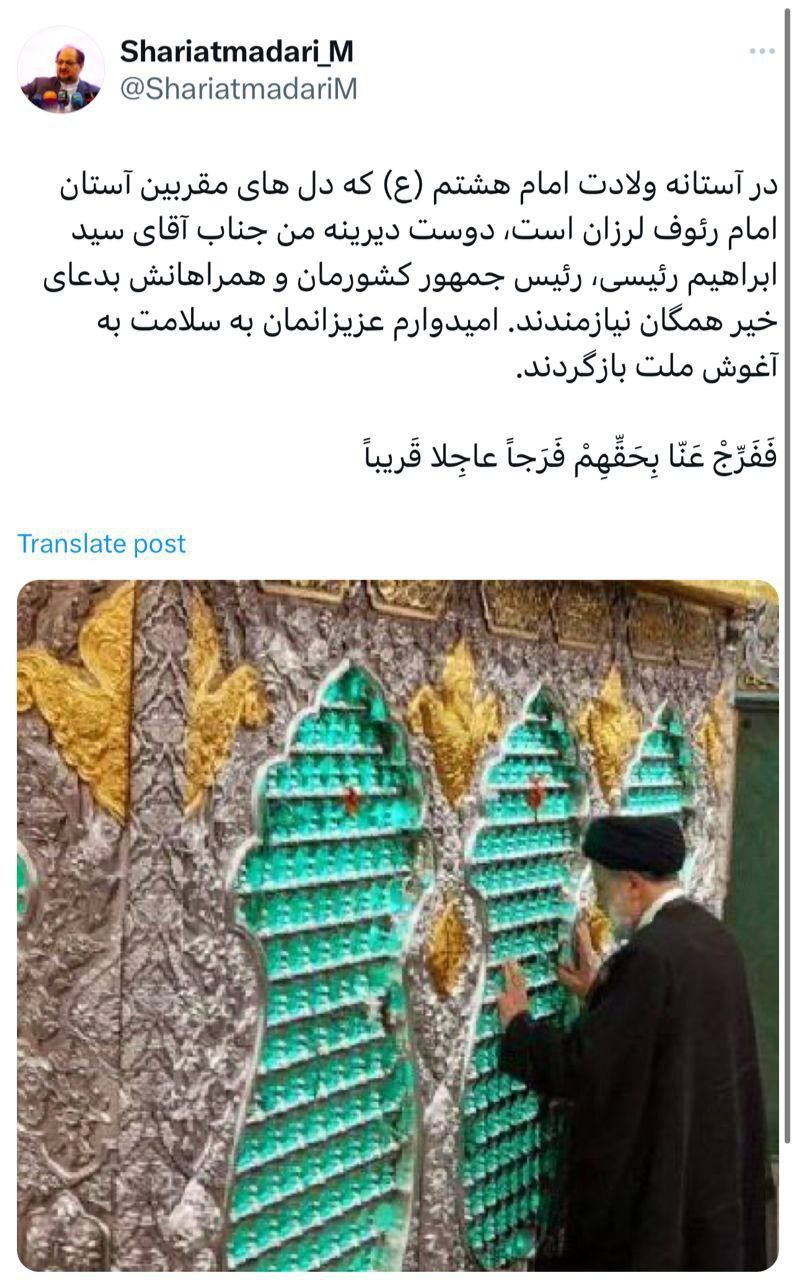 🔹شریعتمداری: امیدوارم عزیزانمان به سلامت به آغوش ملت بازگردن